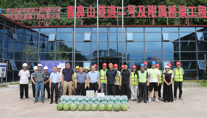 為切實(shí)做好高溫天氣下一線職工的勞動(dòng)保護(hù)和防暑降溫工作,連日來(lái),城投公司黨委書記、董事長(zhǎng)羅倫全,黨委副書記、董事、總經(jīng)理范勇分別帶隊(duì),深入青鼻山隧道二號(hào)及附屬橋梁工程、雅州印項(xiàng)目施工現(xiàn)場(chǎng),親切慰問奮戰(zhàn)在酷暑中的一線建設(shè)者。公司黨委委員、副總經(jīng)理茍剛,黨委委員、副總經(jīng)理瞿橫空陪同慰問。