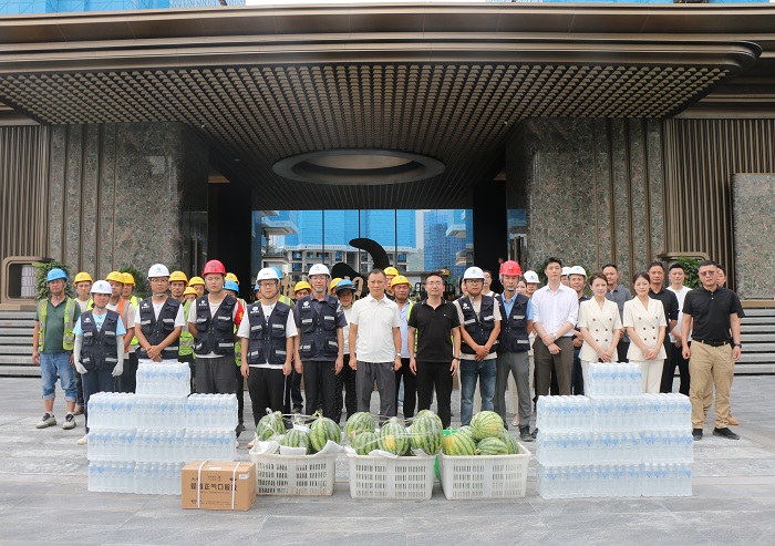 慰問組一行深入施工現(xiàn)場(chǎng),為奮戰(zhàn)在高溫下的一線建設(shè)者送去了礦泉水、藿香正氣液等防暑降溫物資,向他們致以誠(chéng)摯的問候和衷心的感謝,并詳細(xì)詢問了大家的工作生活狀況和防暑措施落實(shí)情況,反復(fù)叮囑大家要?jiǎng)谝萁Y(jié)合,務(wù)必把身體健康和生命安全放在首位,科學(xué)合理安排作息時(shí)間,嚴(yán)格落實(shí)各項(xiàng)防暑降溫措施,確保平安度夏。