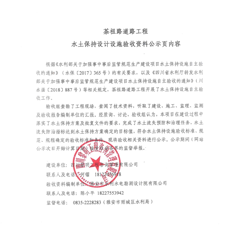 茶祖路道路工程水土保持設(shè)計設(shè)施驗(yàn)收資料公示頁內(nèi)容